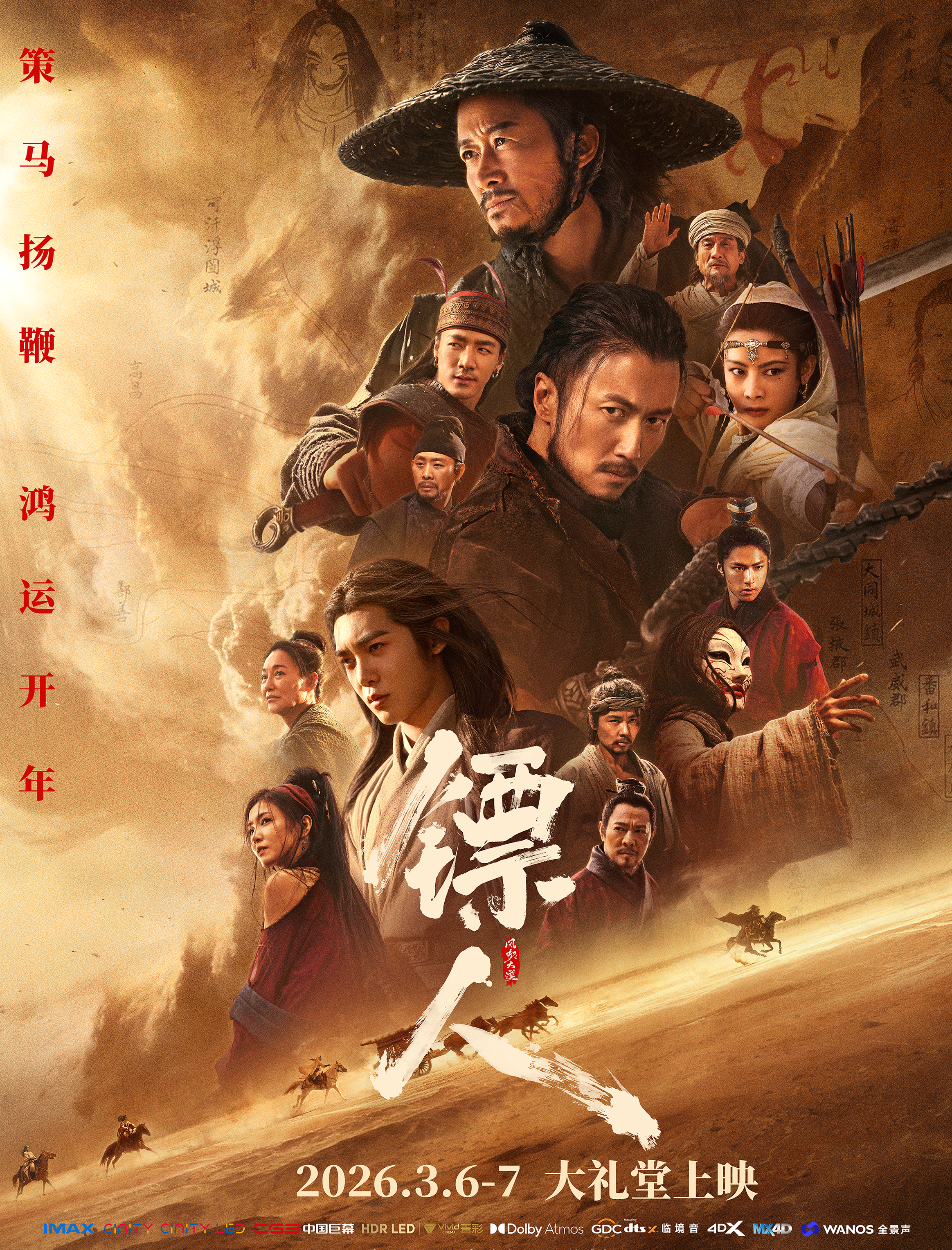 为还原隋末西域的粗粝质感,剧组专程远赴新疆进行实景拍摄。面对烈日暴晒、风沙侵袭以及昼夜温差悬殊的艰苦环境,全体演员始终保持全情投入,以专业态度完成每一场戏份。实景拍摄也为影片带来了更具沉浸感的视觉呈现——苍茫沙丘连绵起伏,残阳映照戈壁旷野,每一帧画面都自带史诗般的恢弘气质。群马奔腾扬起漫天黄沙,近身搏杀飞溅碎石尘土,不仅让武侠场景的真实感与冲击力拉满,更将西域江湖的苍凉与豪迈展现得淋漓尽致。策马江湖启新岁,热血开年贺新春。四代武侠人齐聚,邀观众在新春共赴一场久违的武侠动作盛宴。无论是阖家共赏江湖情长,还是与挚友共赴江湖之约,都能在硬核的动作场面中点燃热血,在纯粹的江湖豪情中汲取温暖与力量。