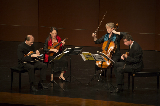 十月的北京秋高气爽。在又一个周末来临之际,由来自加拿大、波兰等地的四位艺术家组成的弦乐乐团来到美丽的清华大学,为观众们带来了一场美妙的音乐盛宴。10月30日周五晚七点,清华大学蒙民伟音乐厅内,由两把小提琴、一把中提琴、一把大提琴带来的潘德列斯基弦乐四重奏温情上演。