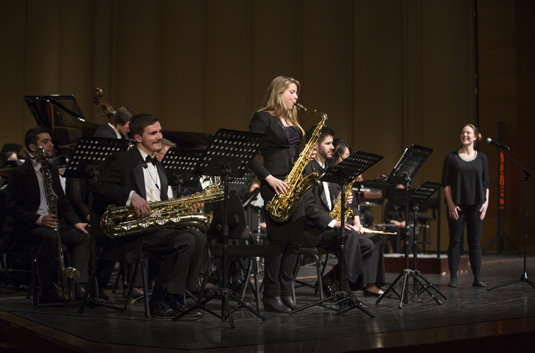 下半场演出以两首爵士乐开始——作曲家Irving Berlin创作的《蓝色的天空》和作曲家George Gershwin创作的《夏日时光》。由一支小型乐队演奏的美妙旋律和Hannah Burson同学爽朗的嗓音,激发了听众们的热情,也得到了管乐团同学的一致好评。