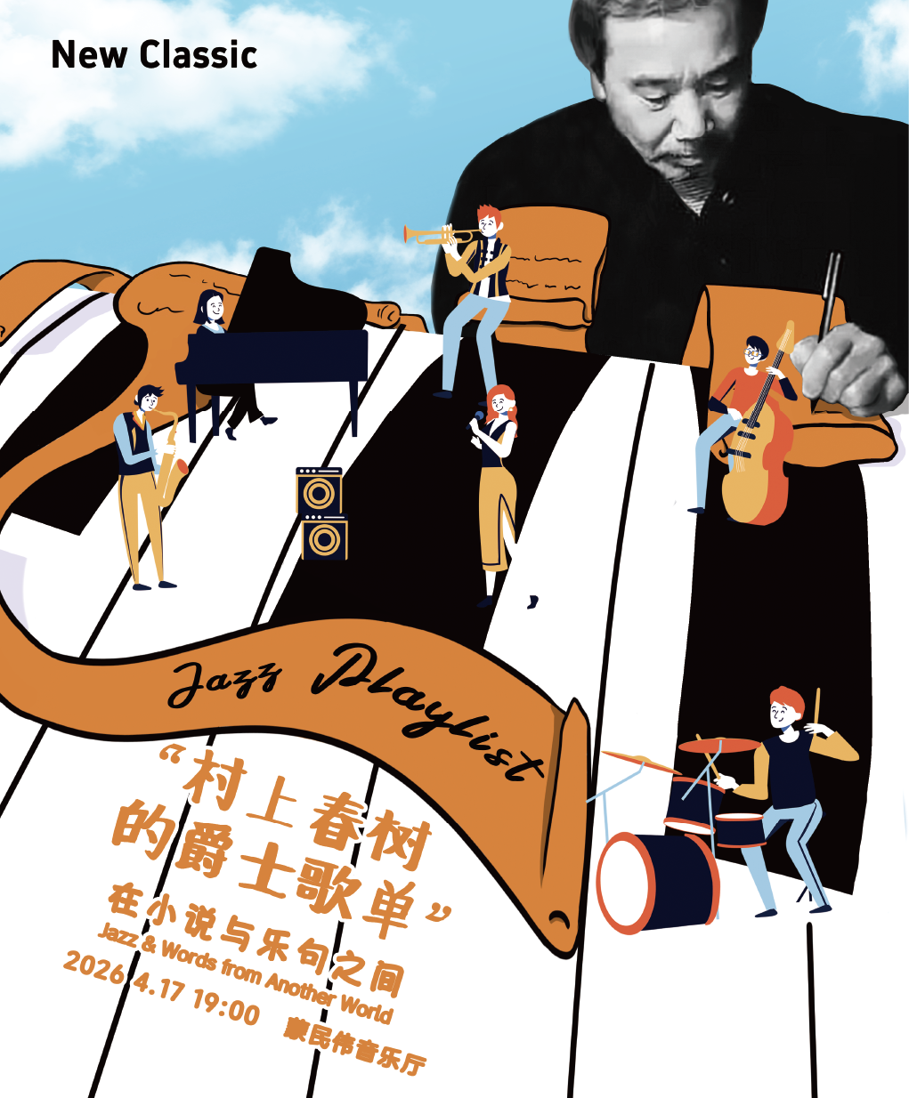 《村上春树的爵士歌单》音乐会,正是顺着这条隐秘的线索展开。演出以那些“曾在书页中出现过的乐句”为坐标,让现场的声响与文字彼此呼应:旋律从小说的背后走到台前,句子在音乐的推送下重新发光。关于暴风雨与成长,关于夜行者、失联的友人,以及只能在深夜与自己相遇的那一部分心灵,在这一晚被缓缓召回。
